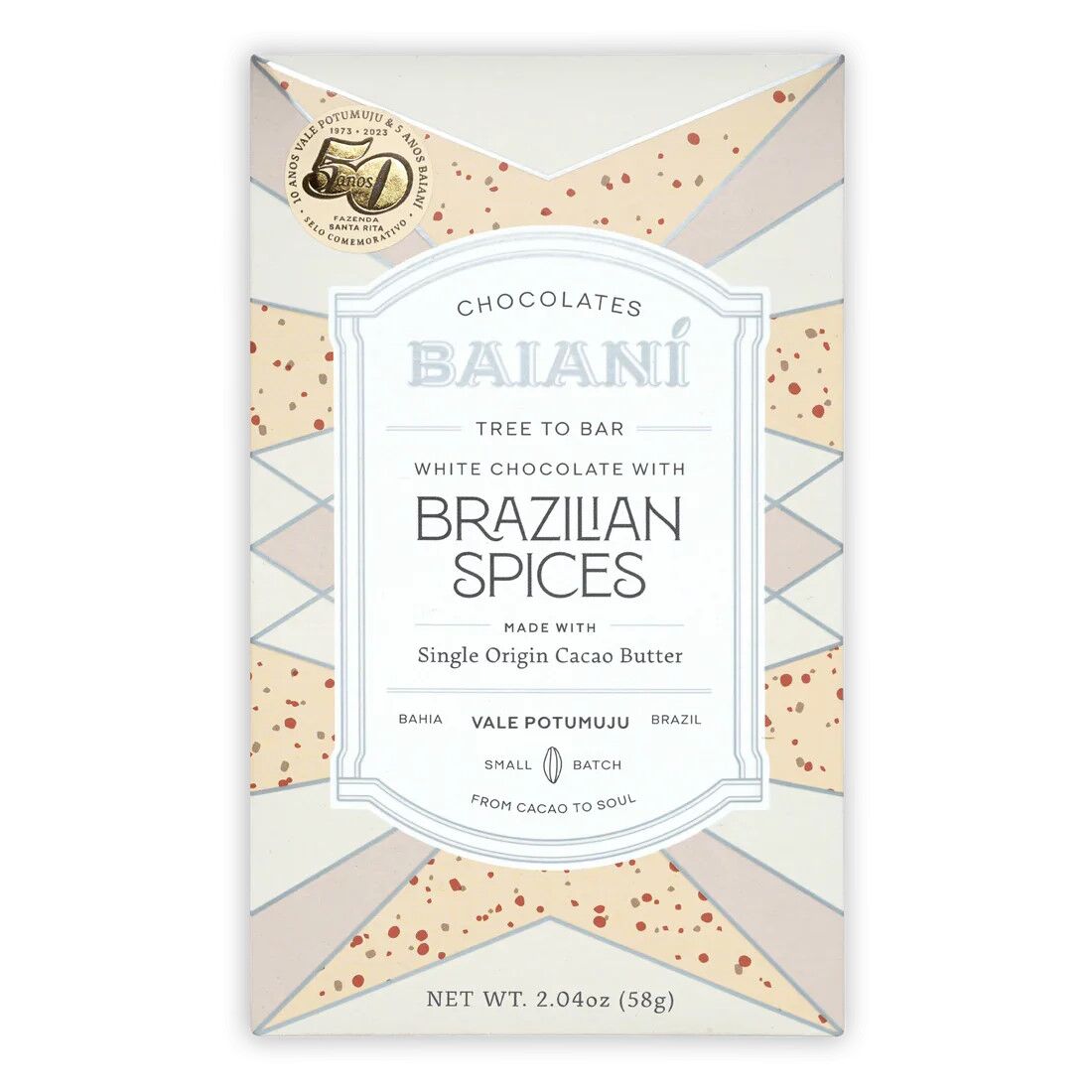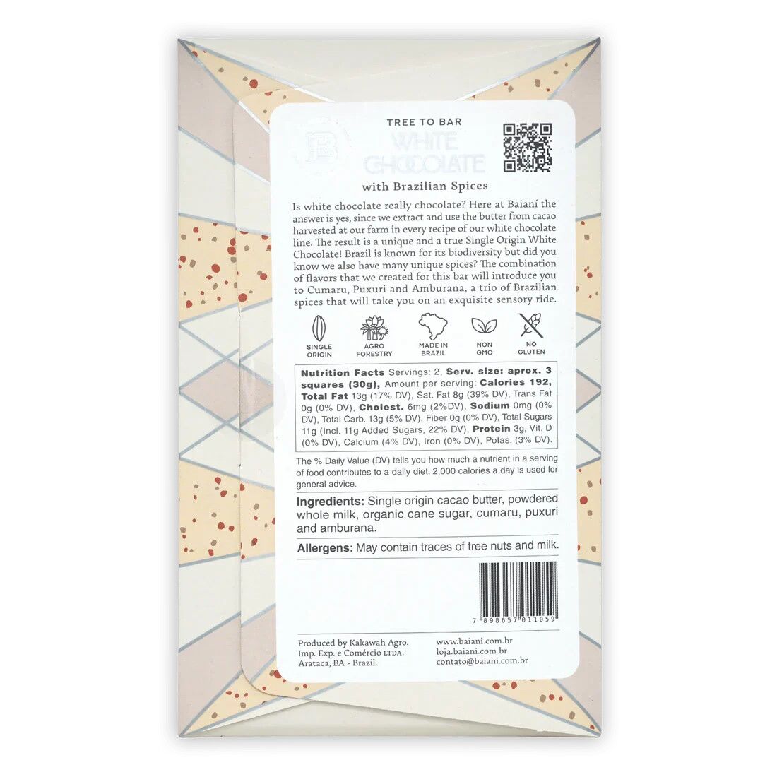 This bar is crafted with single origin cocoa butter, pressed fresh in-house from the same high-quality estate beans Baianí uses in their dark chocolate bars—an almost unheard-of practice in the bean-to-bar world. Why is that a big deal? Because most cocoa butter comes from bland, high-yielding beans, or worse, inferior grades that are nothing but filler made by big companies. When you’re talking about fresh cocoa butter, it’s a game-changer. It’s not as stable as roasted cocoa beans and can lose its flavor quickly. But here, it shines—pure, vibrant, and true.