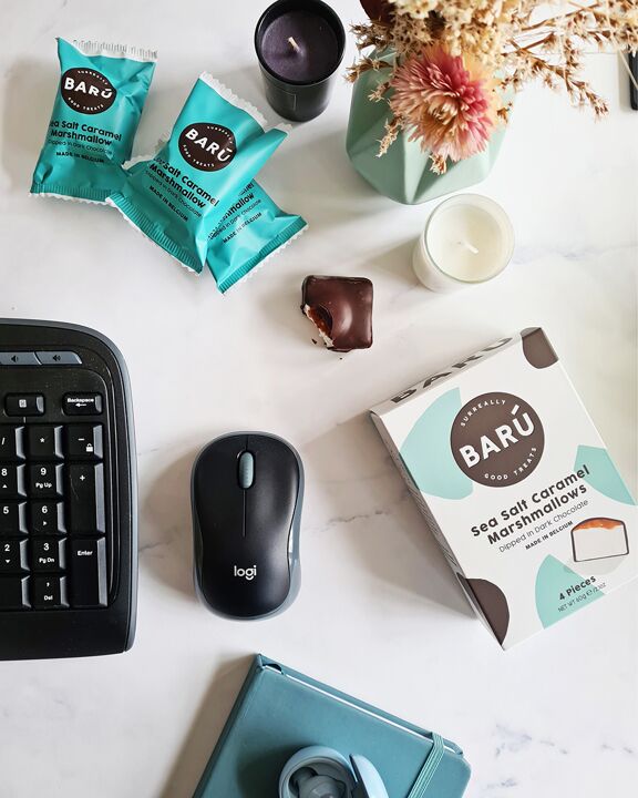 Gourmet vanilla bean marshmallows covered in dark chocolate with a Sea Salt caramel topping. Made with bourbon vanilla beans and solid honey. All marshmallows are individually wrapped for freshness!