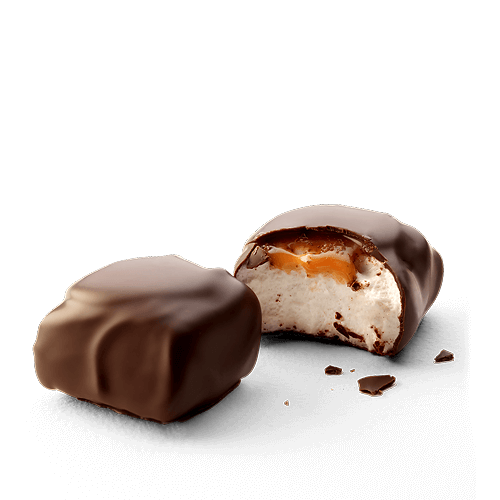 | Ingredients | Marshmallow (47 %) (glucose fructose syrup, sugar, water, dextrose, gelatin, maize starch, honey, ground vanilla bean, acidity regulator: lactic acid), dark chocolate (40 %) (cocoa mass, sugar, cocoa butter, butter oil (milk), emulsifier: soya lecithin, natural flavour: vanilla), Fleur de Sel caramel (13 %) (glucose fructose syrup, sugar, condensed milk, salted butter (milk), whole milk powder, cocoa butter, cocoa mass, water, salt, emulsifier: soya lecithin, natural flavour: vanilla, Fleur de Sel (0.2 %)). Dark chocolate contains cocoa solids 54 % minimum. Allergy Advice : Contains milk and soya. Produced in a factory that also handles nuts, gluten, sesame and egg. |