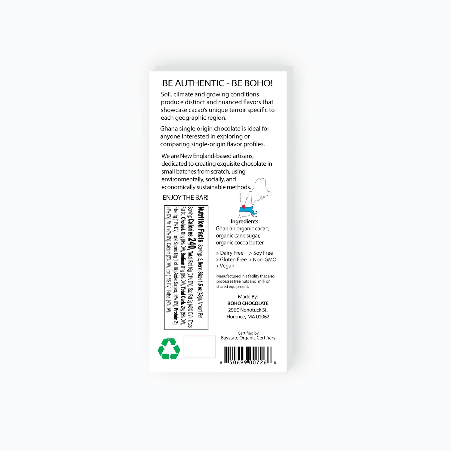 BOHO’s Ghana 70% Dark Chocolate Bar is crafted from premium Ghanaian cocoa beans, recognized for their bold, rich flavors. This bar delivers a luxurious chocolate experience with a 70% cocoa content, perfectly balancing the intensity of dark chocolate with the creamy, robust notes that are a hallmark of Ghana’s cocoa. The texture is exceptionally smooth, providing a melt-in-your-mouth sensation. Ideal for those who appreciate the strong, full-bodied taste of single-origin chocolate, our Ghana bar captures the essence and tradition of Ghana’s renowned cocoa production. It offers chocolate lovers a direct taste of Ghana’s deep, flavorful cocoa heritage.