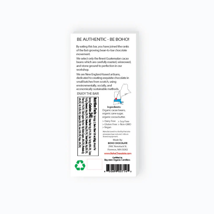 BOHO’s Guatemala 70% Dark Chocolate Bar is made from exquisite Guatemalan cocoa beans, famed for their rich and vibrant flavor profile. This bar presents a captivating chocolate experience with a 70% cocoa content, harmonizing dark chocolate’s richness with the unique fruit and berry notes characteristic of Guatemalan cacao.