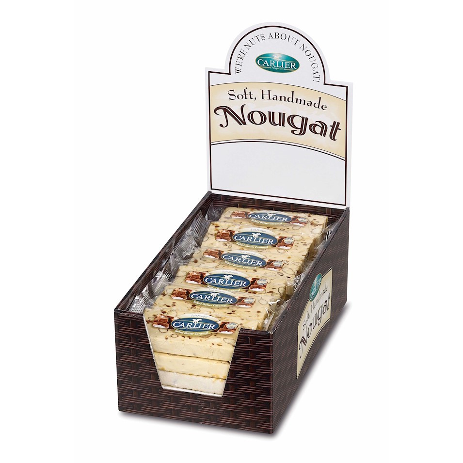 The classic Carlier salted butter caramel nougat blend infused with a generous amount of almonds