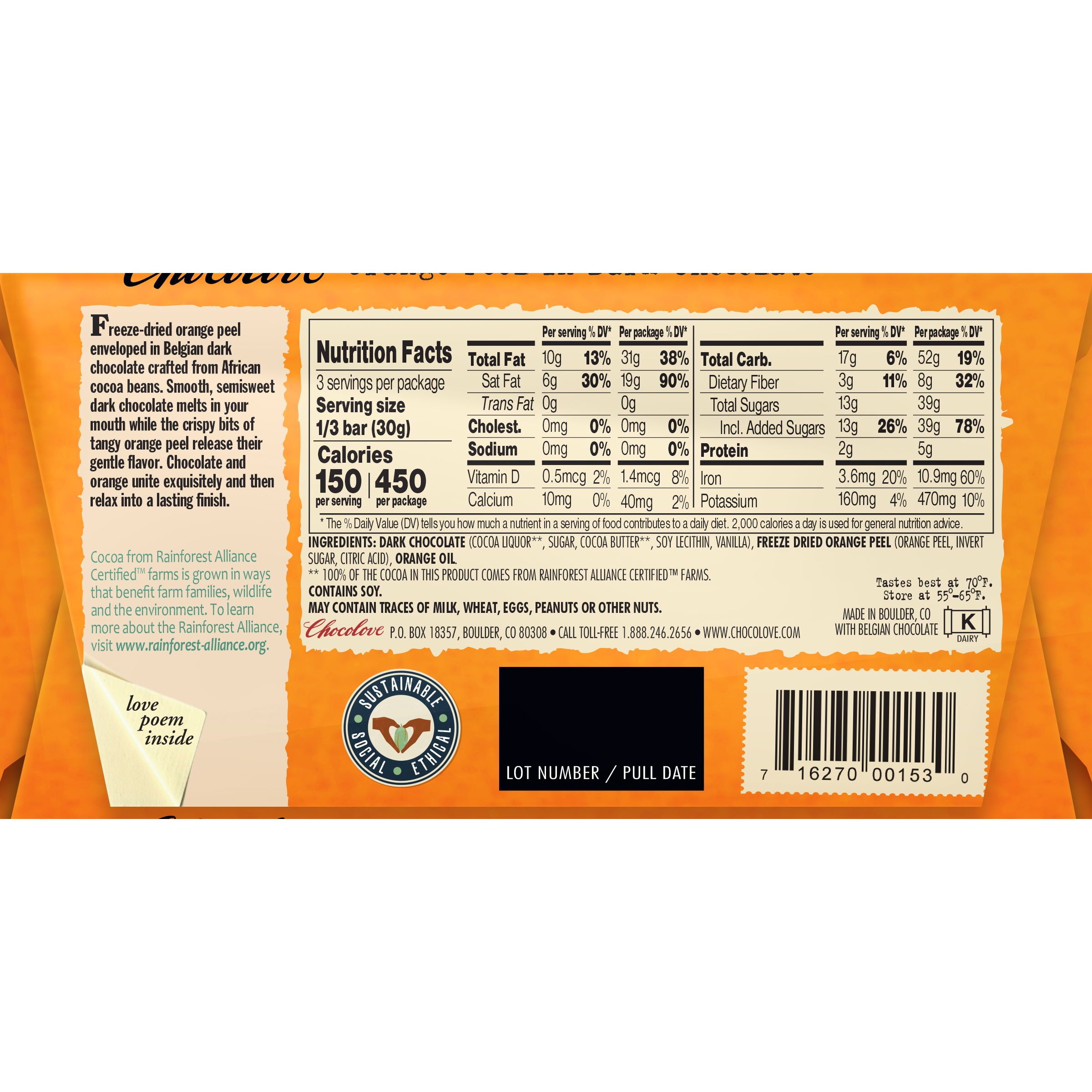 Freeze drying captures the aromatic flavor of orange peel, which is enveloped in smooth Belgian chocolate. In the mouth, the chocolate melts and the crispy bits of orange peel release their flavor. Chocolate and orange unite exquisitely, then relax into a lasting orange finish.