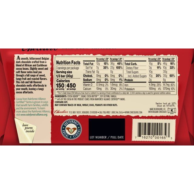 This is a rich chocolate with 65% cocoa content made from a blend of African and Caribbean cocoa beans for complex aroma and rich flavor. The Caribbean cocoa beans add subtle hints of fruit and vanilla like notes. The beans are carefully roasted to retain some complexity in the flavor profile. Extra cocoa butter is added for smoothness. Sugar plays only a supporting role in the flavor profile. A long conching time produces an exceptionally fine particle size and balanced flavor. Upon eating, the complex aroma with hints of fruit gives way to a rich cocoa flavor. The extra cocoa butter and minimal sugar assist with quick melt, smoothness and a pleasant cocoa aftertaste.