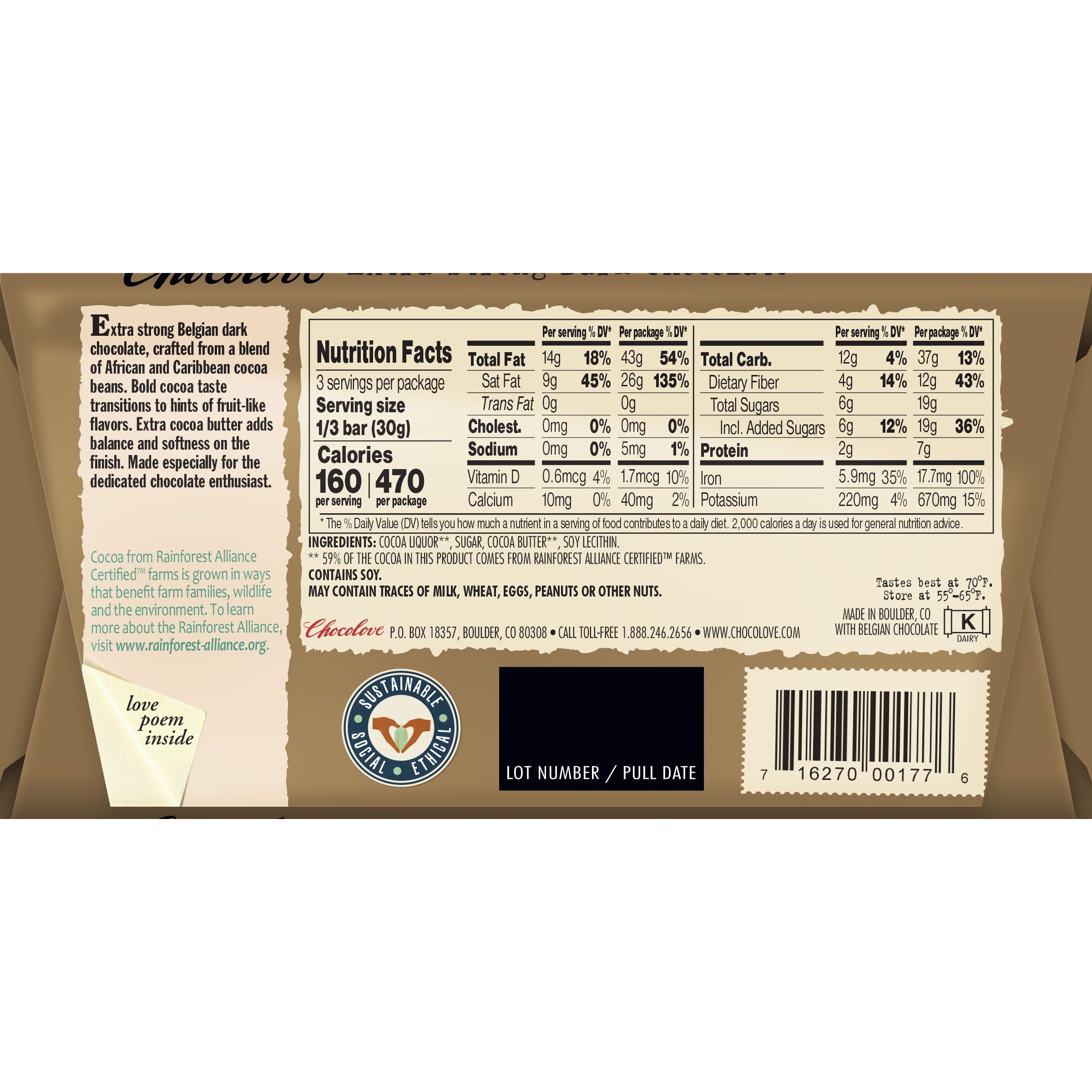 This chocolate bar, with its 77% cocoa content, is one of the strongest chocolate bars made for eating. Especially for the dedicated chocolate enthusiast, it has been crafted to deliver intense cocoa flavor while keeping bitterness and acidity in check. This artful blend of Belgian and French chocolates is made from African and South American cocoa beans.
