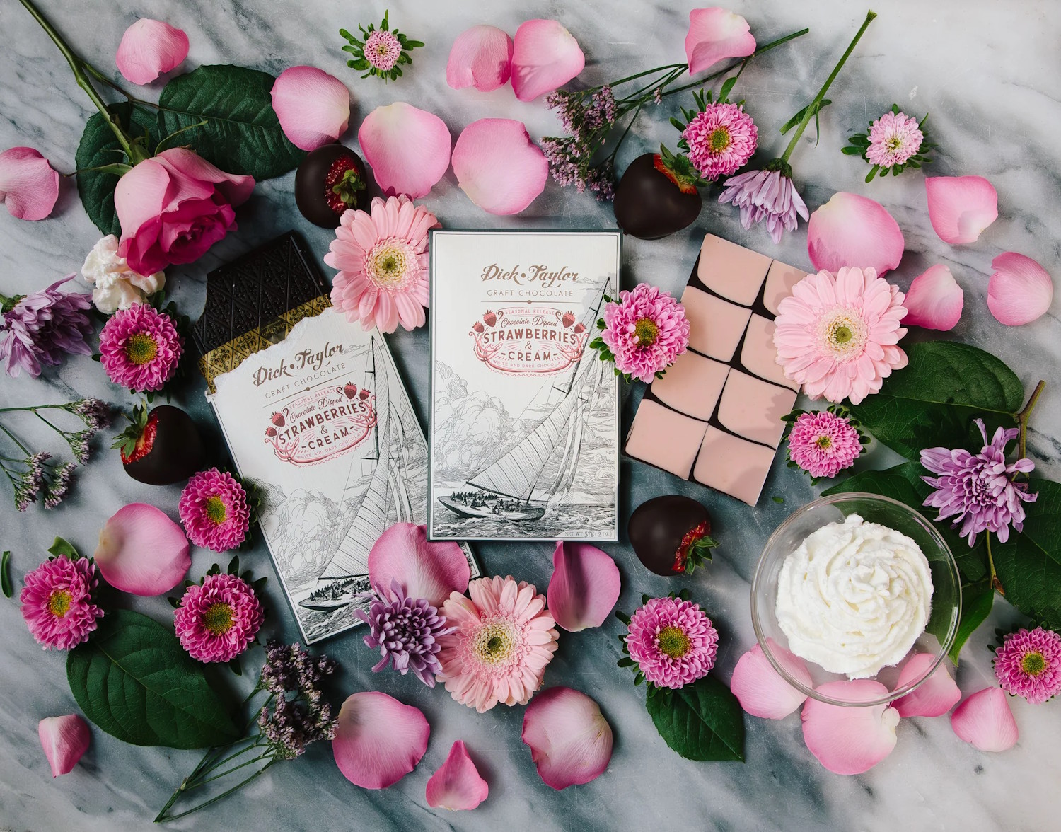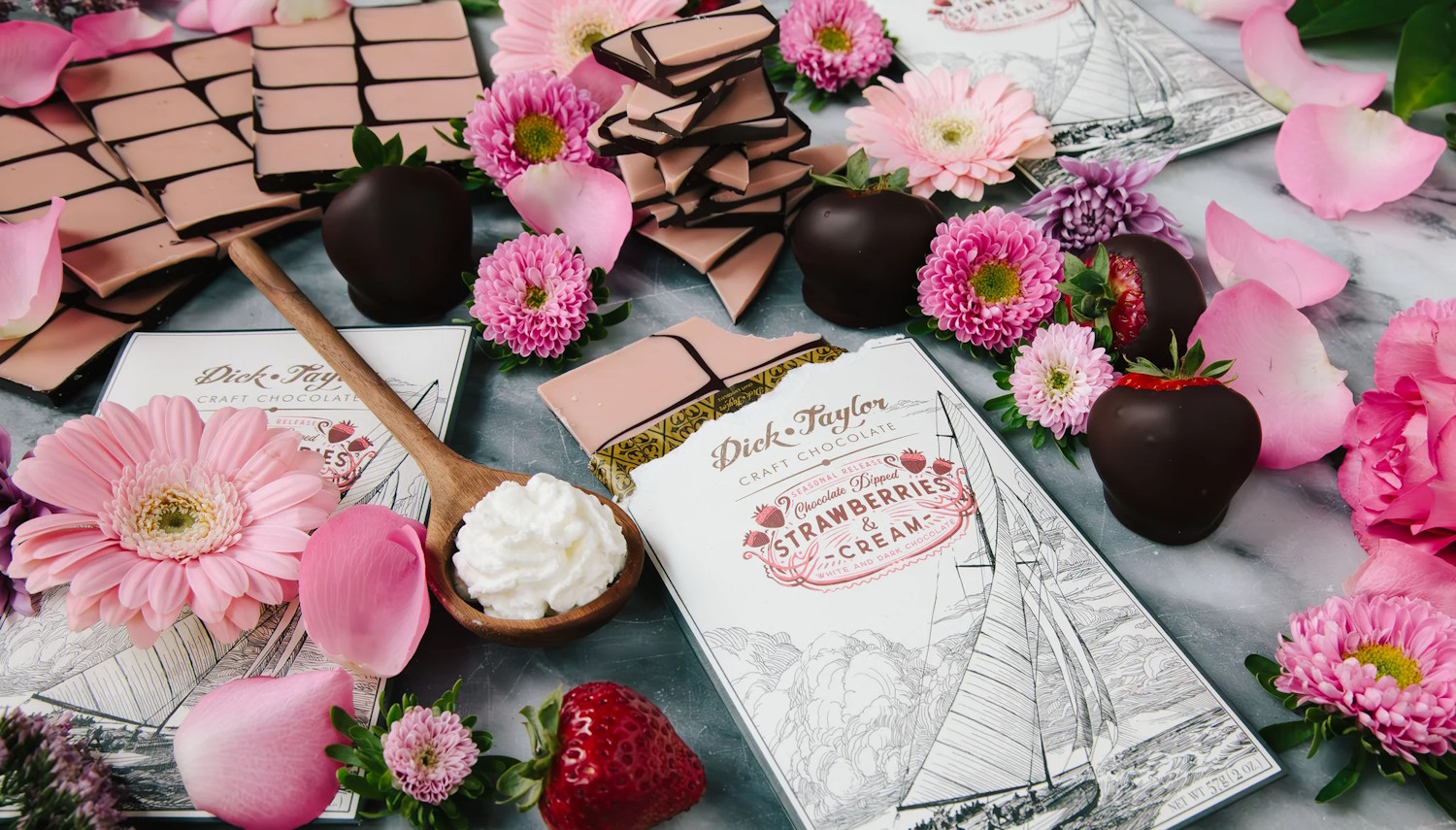 Once a year, for Valentine’s Day, Dick Taylor makes the ever-coveted treat; ‘Chocolate Dipped Strawberries’ to sell to their local customers. Furthermore, they thought it would be fun to turn that treat into a chocolate bar for everyone to enjoy! We are not exaggerating when we say it tastes JUST like the real thing. This bar has two delicious layers starting with Dick Taylor’s 72% Belize single origin dark chocolate. The other layer is a Peruvian white chocolate, made with Alexandre Family Farm A2/A2 whole milk and freeze-dried strawberries. The strawberry white chocolate is fruity, creamy and sweet with the perfect level of tartness to round it out.