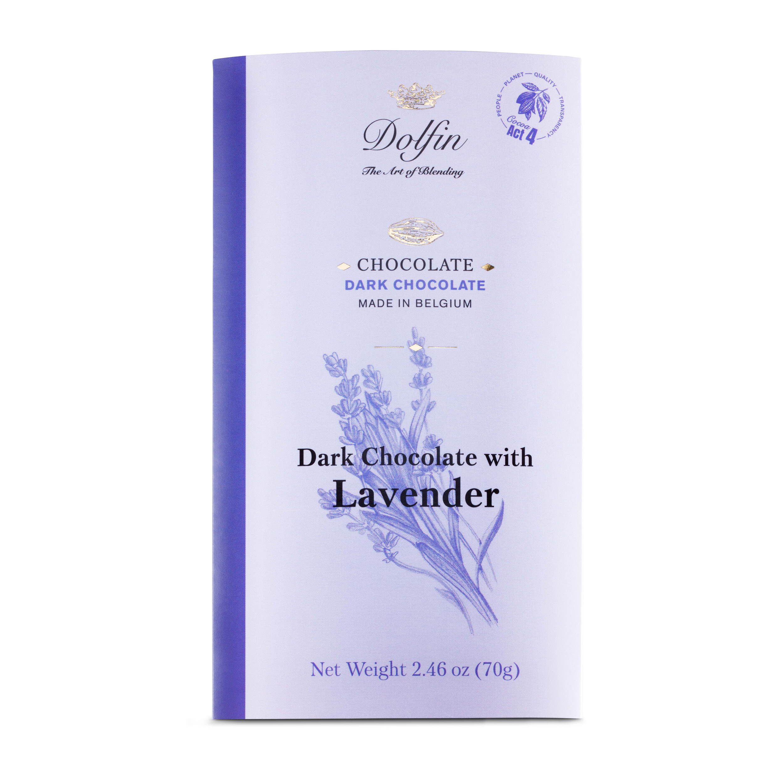 | Ingredients | Cocoa mass, sugar, cocoa butter, lavender 1.2%, emulsifier: soya lecithin, natural vanilla flavor. Allergens: may contain traces of nuts, egg, milk, gluten and sesame. |