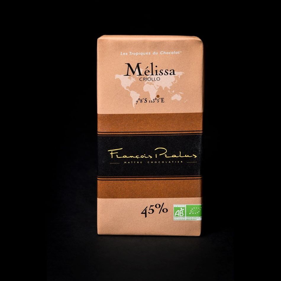 With its 45% cocoa, the “Mélissa” chocolate has character for a milk chocolate and many admirers. Would it be for its perfect balance or its notes of honey and caramel?