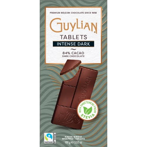 Experience Guylian’s new reduced-sugar bars, which use top quality stevia-based sweeteners. The intense Dark Chocolate bars are made from only the finest ingredients and contain 84% pure cocoa content, resulting in a sublime flavor and superb texture. Surprise your senses with the rich and intense cocoa flavor without the sugar; this bar is also vegan friendly.