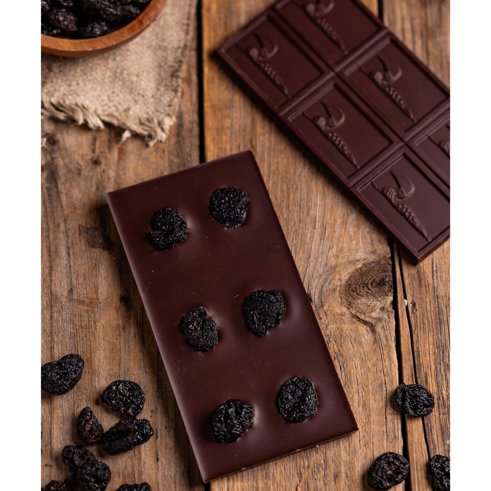 Made with a blend of organic premium cacao beans and sweet dried cherries.