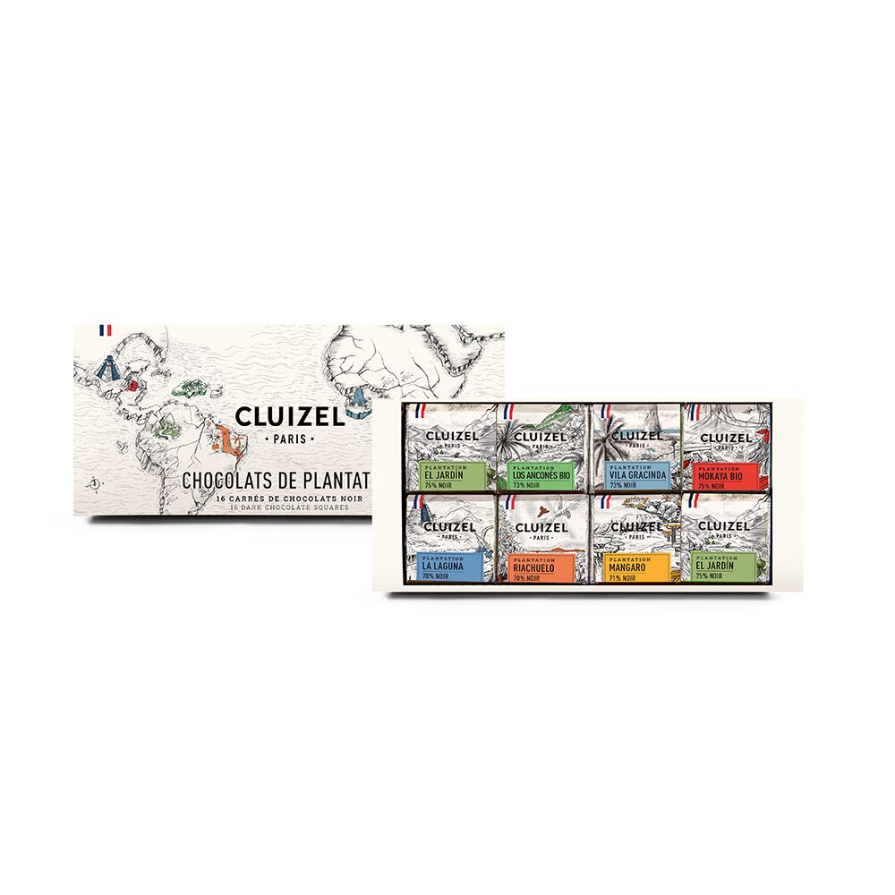 Experience the world with these special treats; the most enchanting flavours and most diverse horizons await discovery thanks to these Plantation Chocolate squares. Give CLUIZEL’S brightly coloured box as a gift or enjoy it yourself and explore the unique exoticism of the 7 CLUIZEL Plantations.