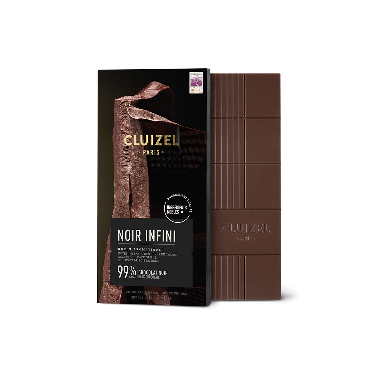 The Manufacture Cluizel has brought together the best cocoa to produce some exceptional chocolate. The extreme cocoa content of this dark chocolate reveals deep, dense accents designed for connoisseur palates. This nearly pure cocoa chocolate is enhanced by ginger and cinnamon notes.