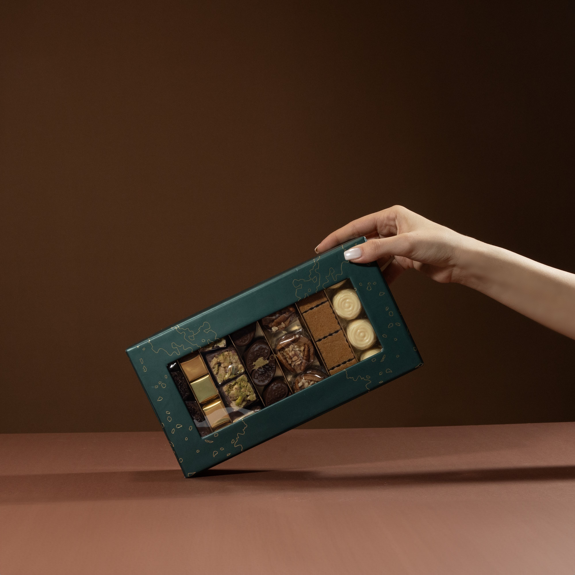 A luxurious assorted chocolates box including an array of decadent confections. The Chocolate Fruittina box includes the following chocolates: