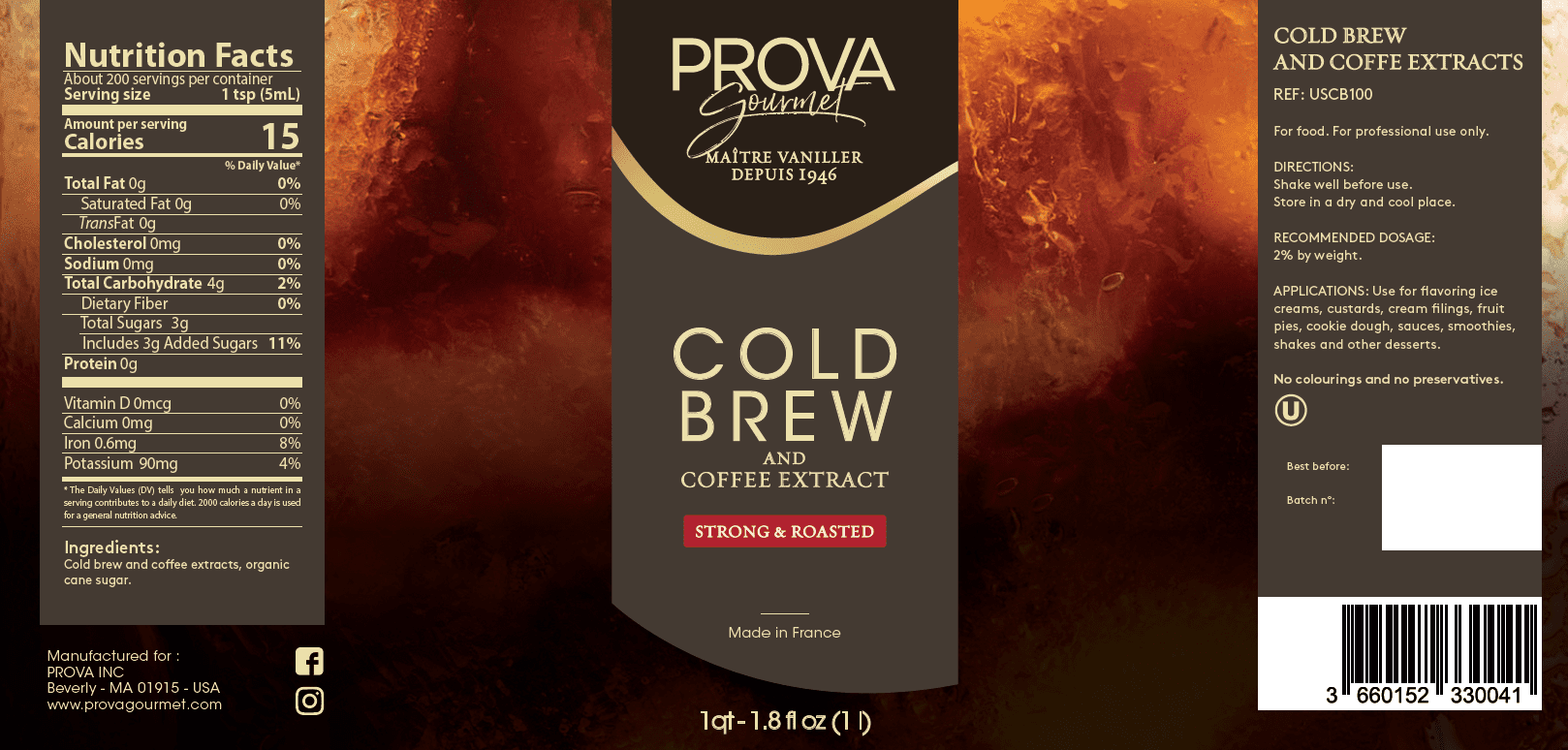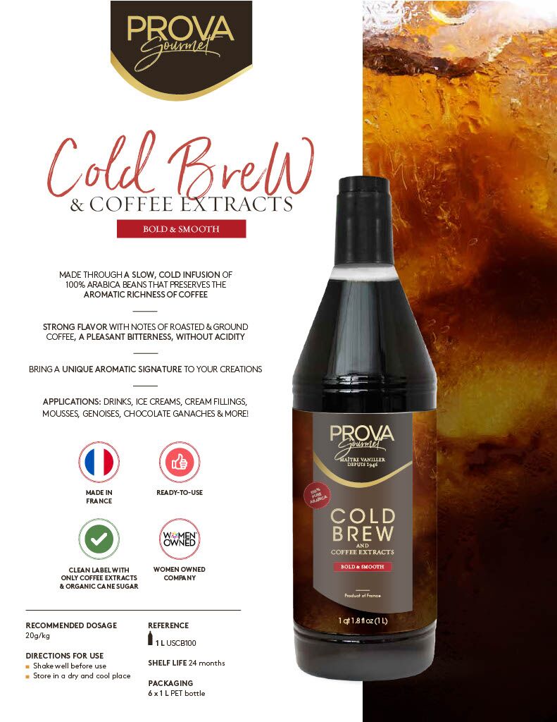 Discover it in a ready-to-use coffee extract. Strong, with roasted and ground coffee notes, a pleasant bitterness, without acidity. For a distinctive aromatic signature in your creations.