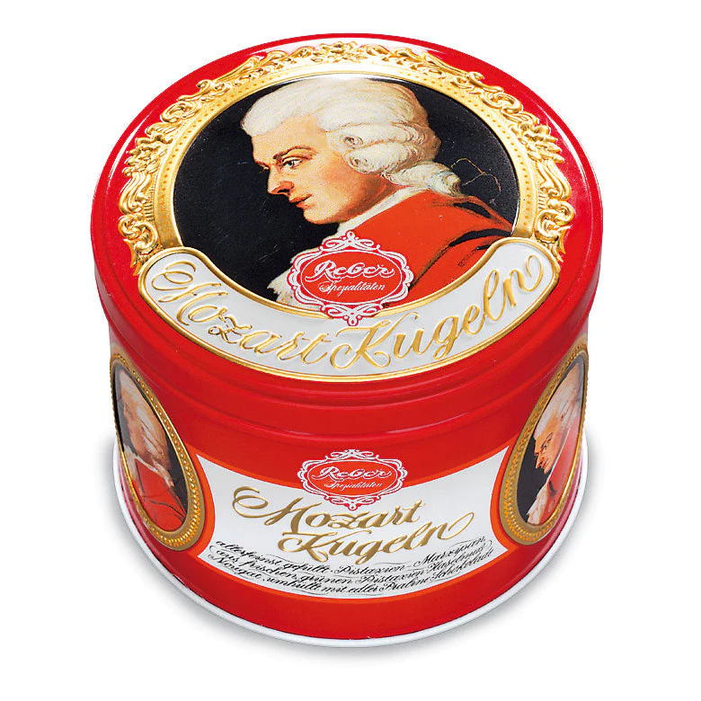 Genuine Reber Mozart-Kugel is packaged in a unique Mozart Round Tin, making a great festive gift idea for all occasions.