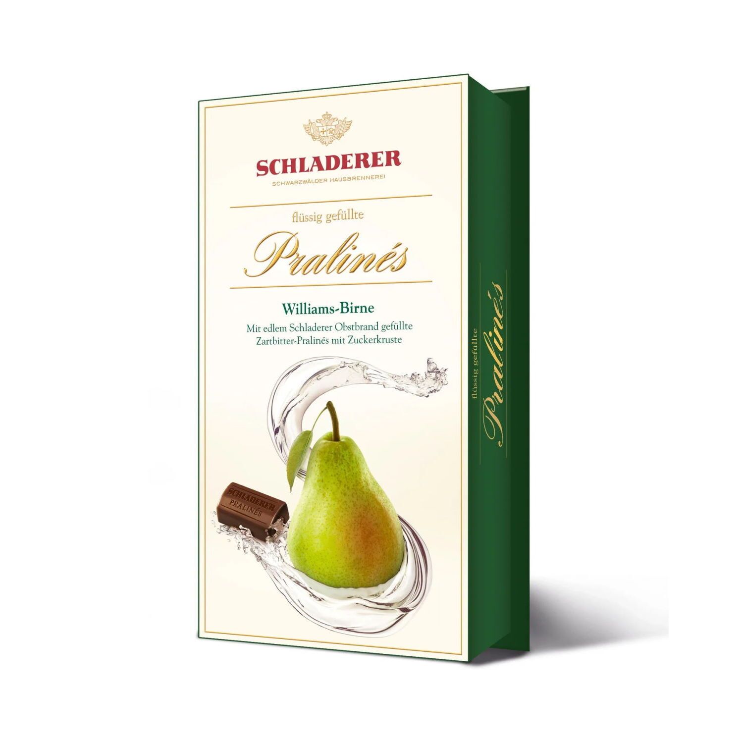 Infused with Schladerer Williams Pear Brandy, this dark chocolate praliné has a sugar crust surrounding the brandy interior.