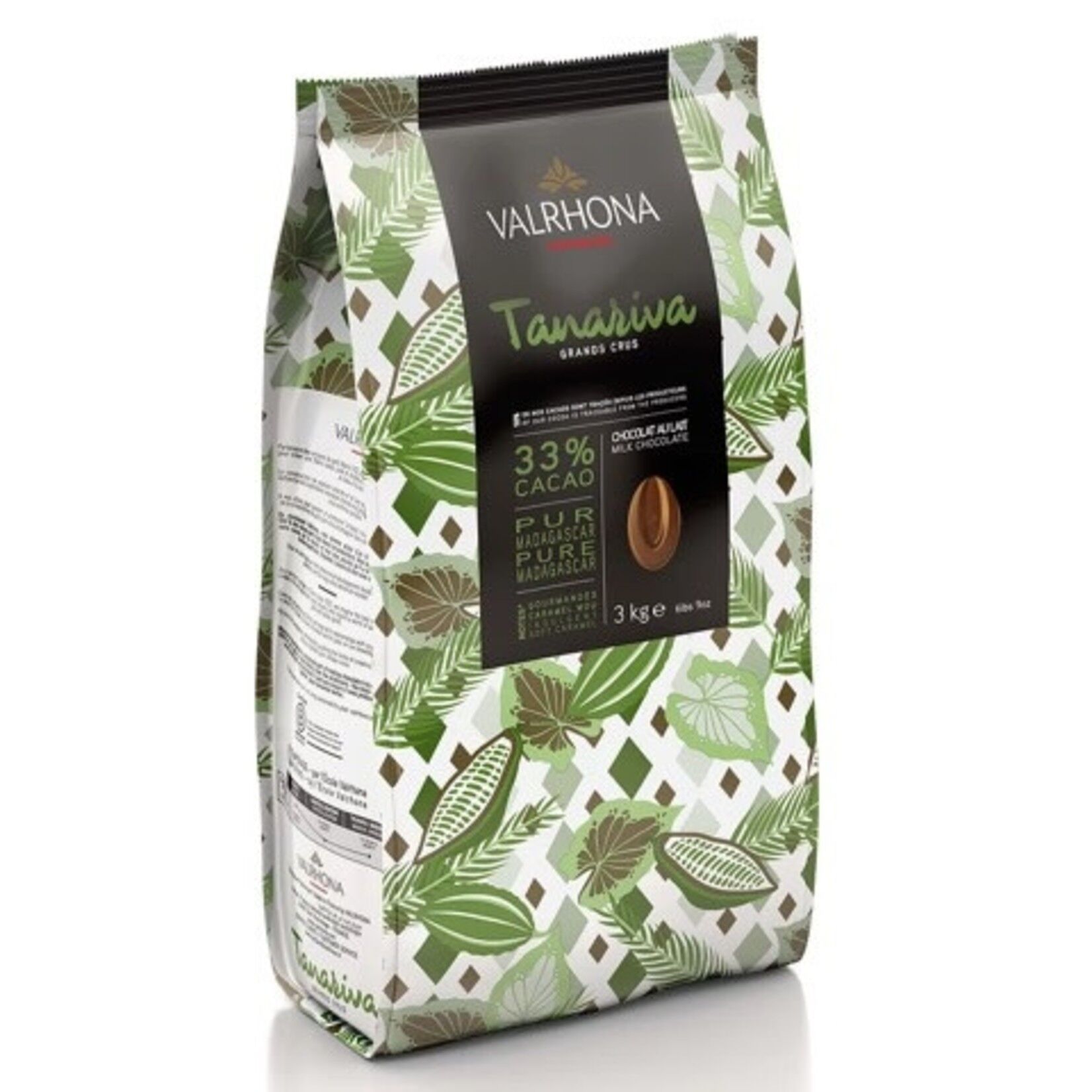 | Ingredients | Sugar 37.4%, cocoa butter 25.5%, whole milk powder 22.8%, cocoa beans from Madagascar 8.2%, dried skim milk 5.1%, natural vanilla extract 0.5%, emulsifier: sunflower lecithin 0.4%, natural vanilla flavor 0.1%. May contain traces of nuts, soy. Repackaged products may contain or be processed with equipment that comes into contact with WHEAT, EGGS, PEANUTS, SOY, TREE NUTS, and/or MILK. |