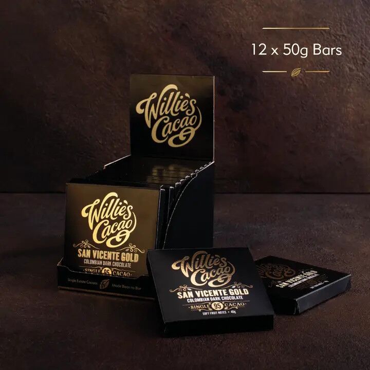 These beautiful beans from the San Vicente district in Colombia have such a gentle character, they make the perfect 95% dark chocolate. Their softly floral fruit notes come with whispers of honey.